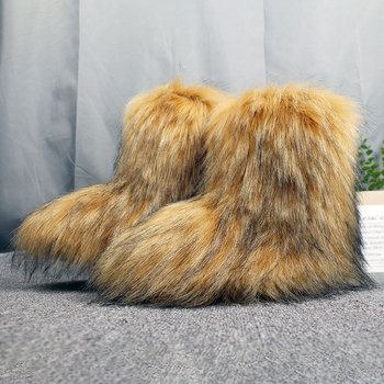 Bán Buôn Phụ Nữ Giày Mùa Đông Faux Lông Khởi Động Phụ Nữ Fluffy Ấm Sang Trọng Giày Dép Cô Gái Lông Lông Bottes Giày Thời Trang Giày Tuyết Khởi Động